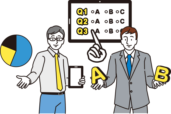 管理画面から問題やアンケートを簡単に作ることができ、教育内容やレベルに沿った習熟度のチェックが行えるため、個々に合わせた傾向と対策が可能です。