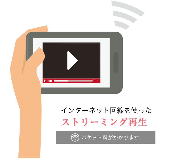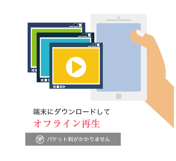 事前にリスト化してダウンロードした動画は、パケット通信なしで再生できるため、通信制限や通信環境を気にせずに、いつでもどこでも安心して利用いただけます。